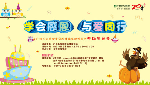11月19日(本周六),广州圣丹福医院幸孕妈咪俱乐部第9期会员亲子活动之学会感恩、 与爱同行圣丹福宝宝集体生日会火爆来袭啦,将在广州圣丹福医院二楼候诊区集体给圣丹福宝宝们过一个特别的生日...[ 详细]
